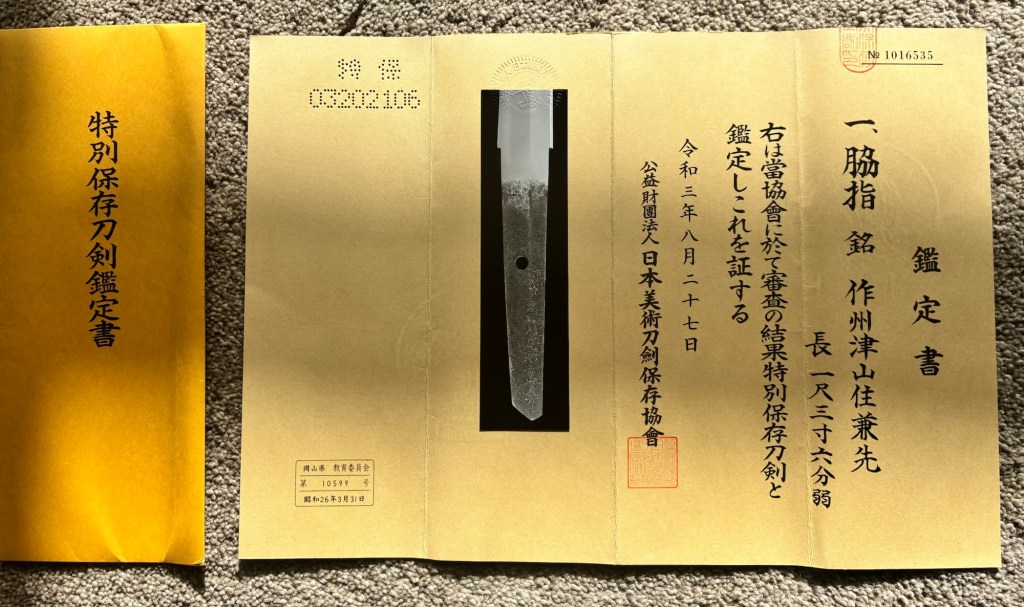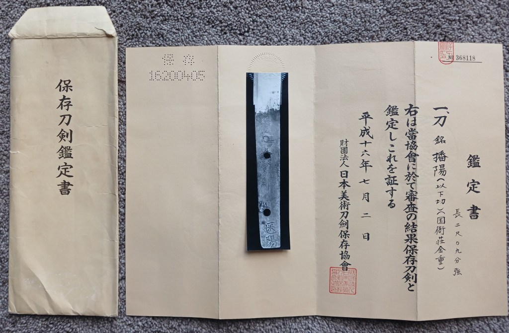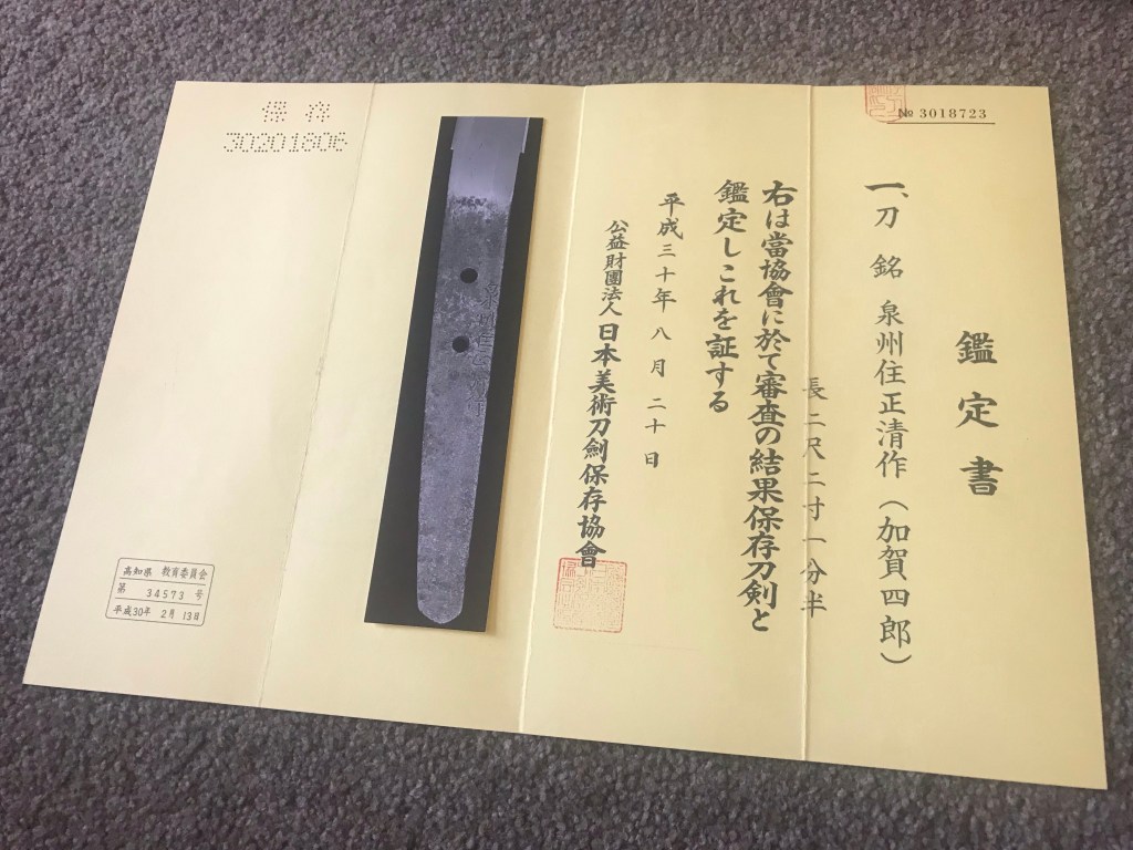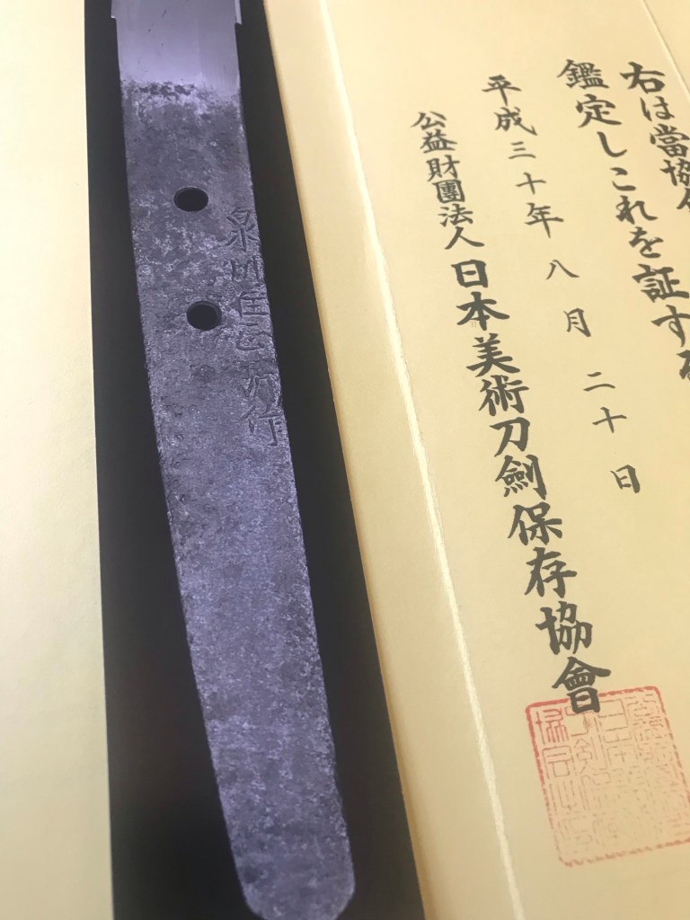 Known sword smith and matching signature on sword & judgement certification with seal.